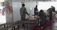 今天全天拍摄地点有三处:屠宰场、冷库、销售市场。全是血腥镜头。