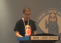 在知无知成立一周年庆典上,谌洪果的主题发言。