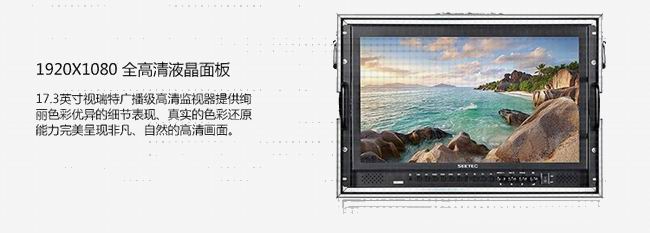 视瑞特P173-9HSD-CO 17寸专业广播级箱载式导演高清监视器。操作极其方便。含带电池两块、十米数据线、交流电适配器、遮光罩等。