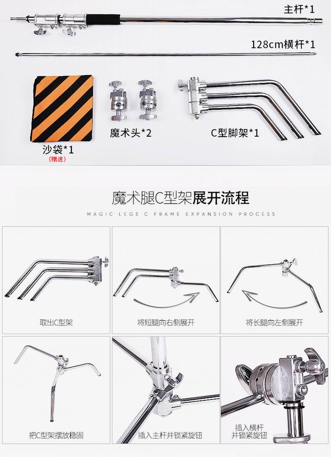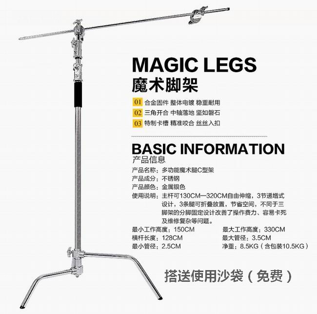 不锈钢魔术腿灯架,租赁就随件免费使用沙袋。